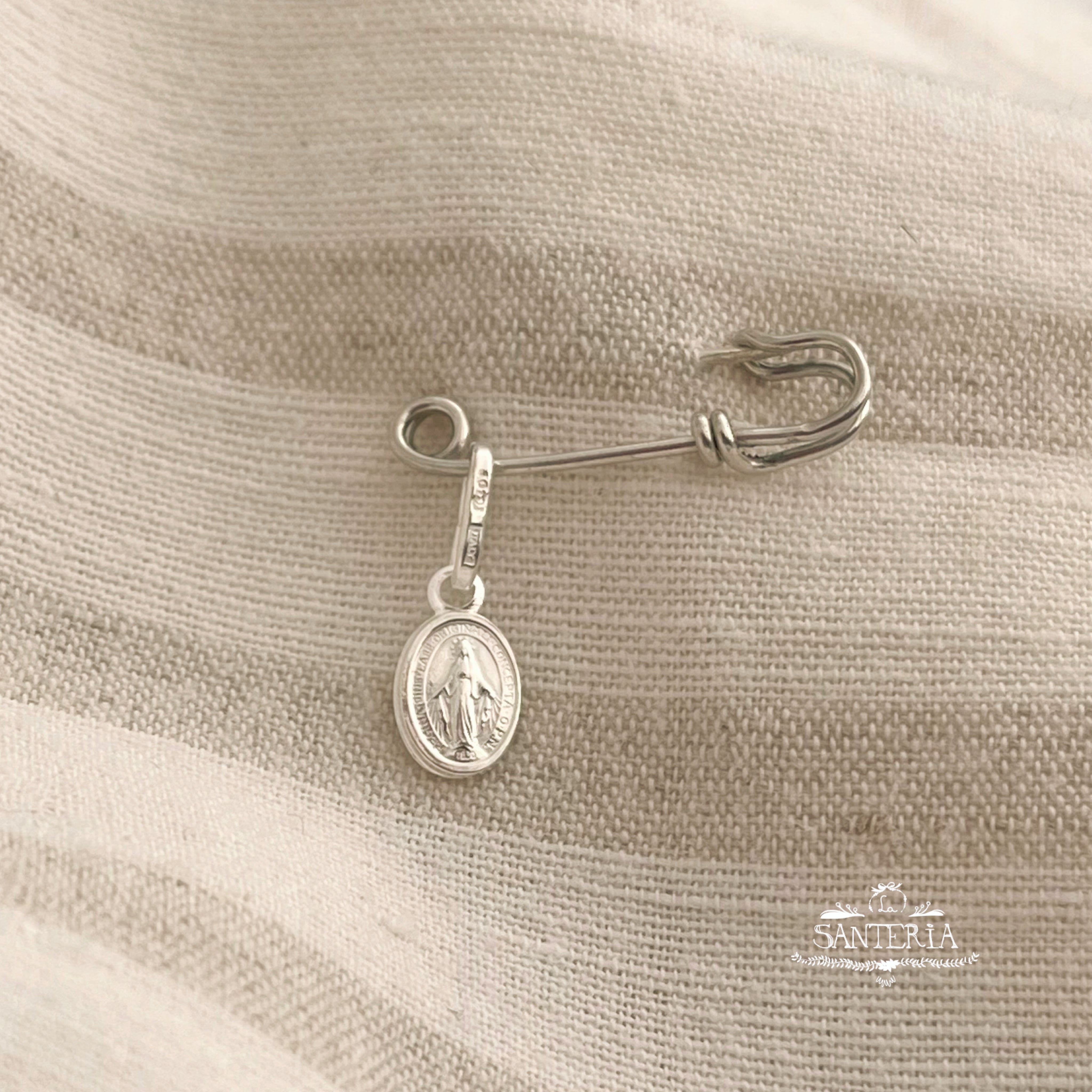 Prendedor de plata,Virgen de los Rayos en la medalla Milagrosa encargada en una de sus Apariciones a Santa Catalina de Laboure