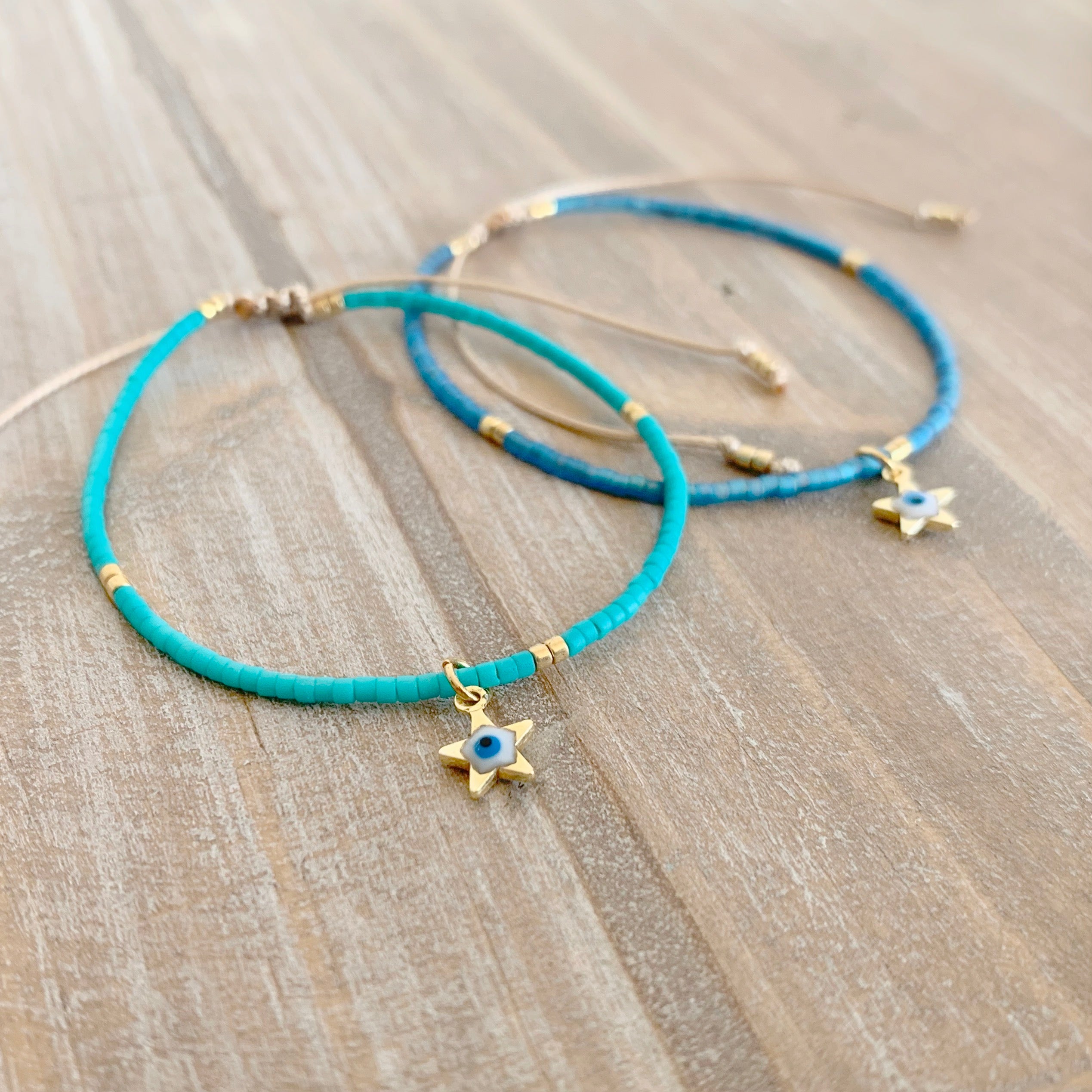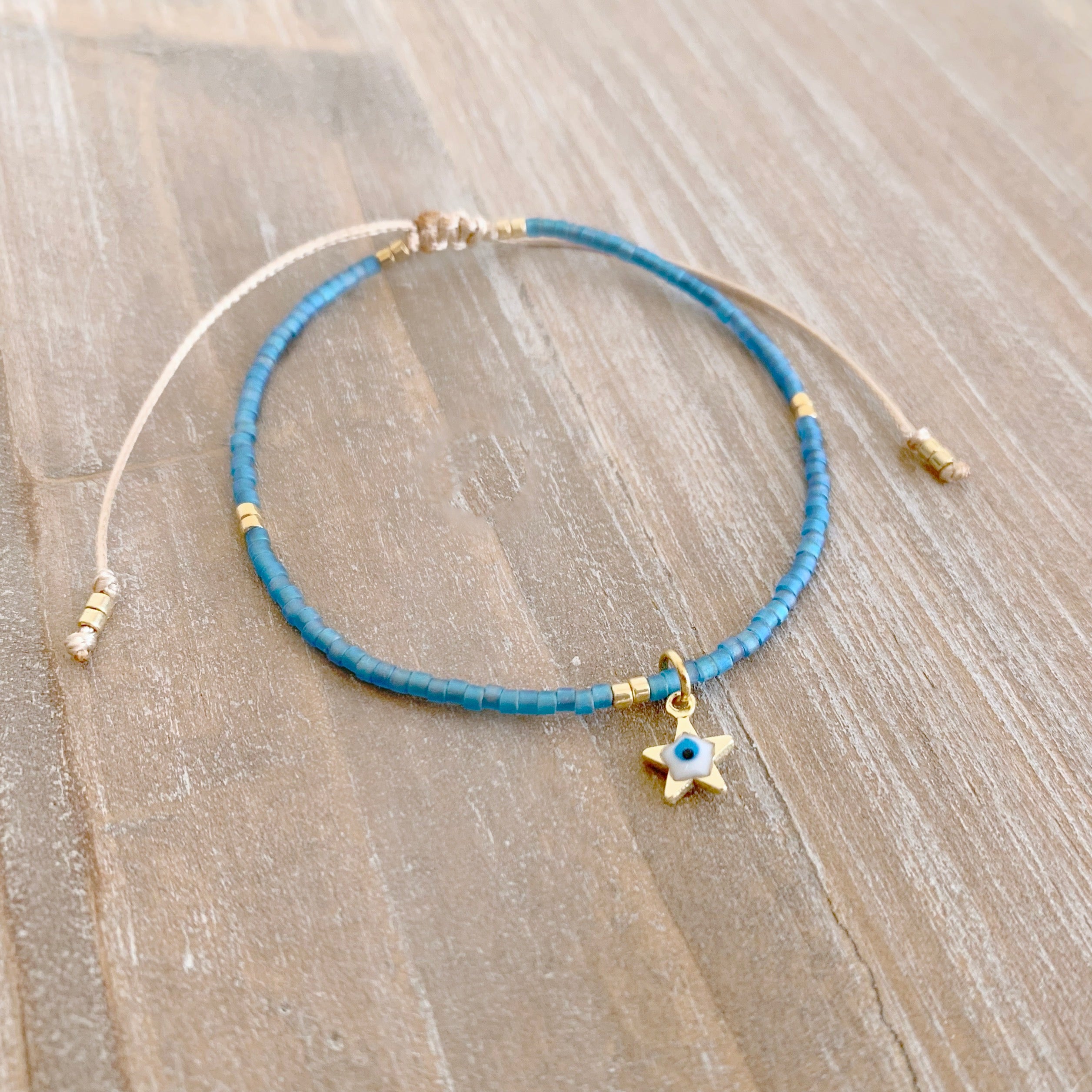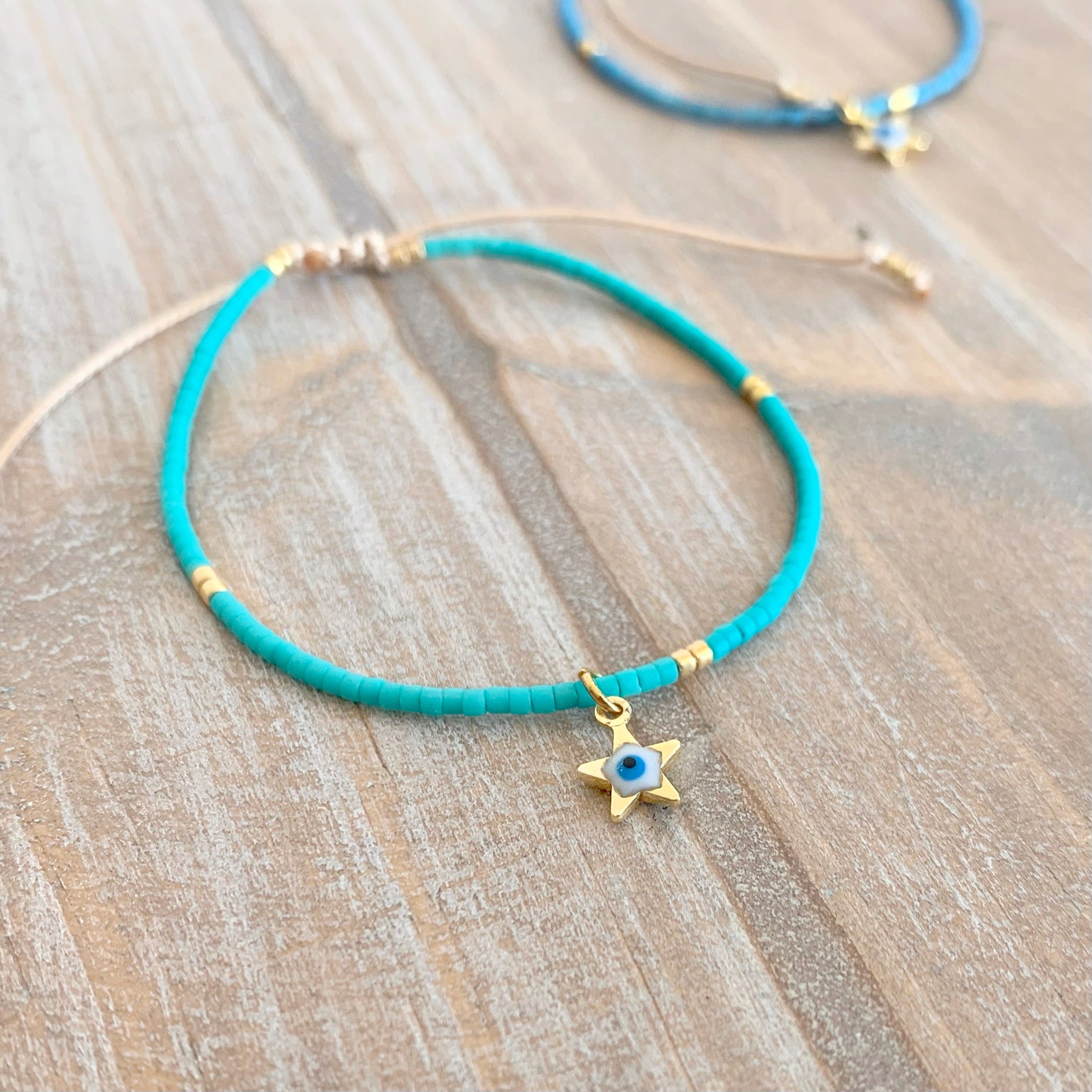 Dale un toque único a tu estilo mientras atraes protección y buena energía. Diseñada con delicadeza, nuestra pulsera combina arte y significado, perfecta para quienes buscan algo especial.