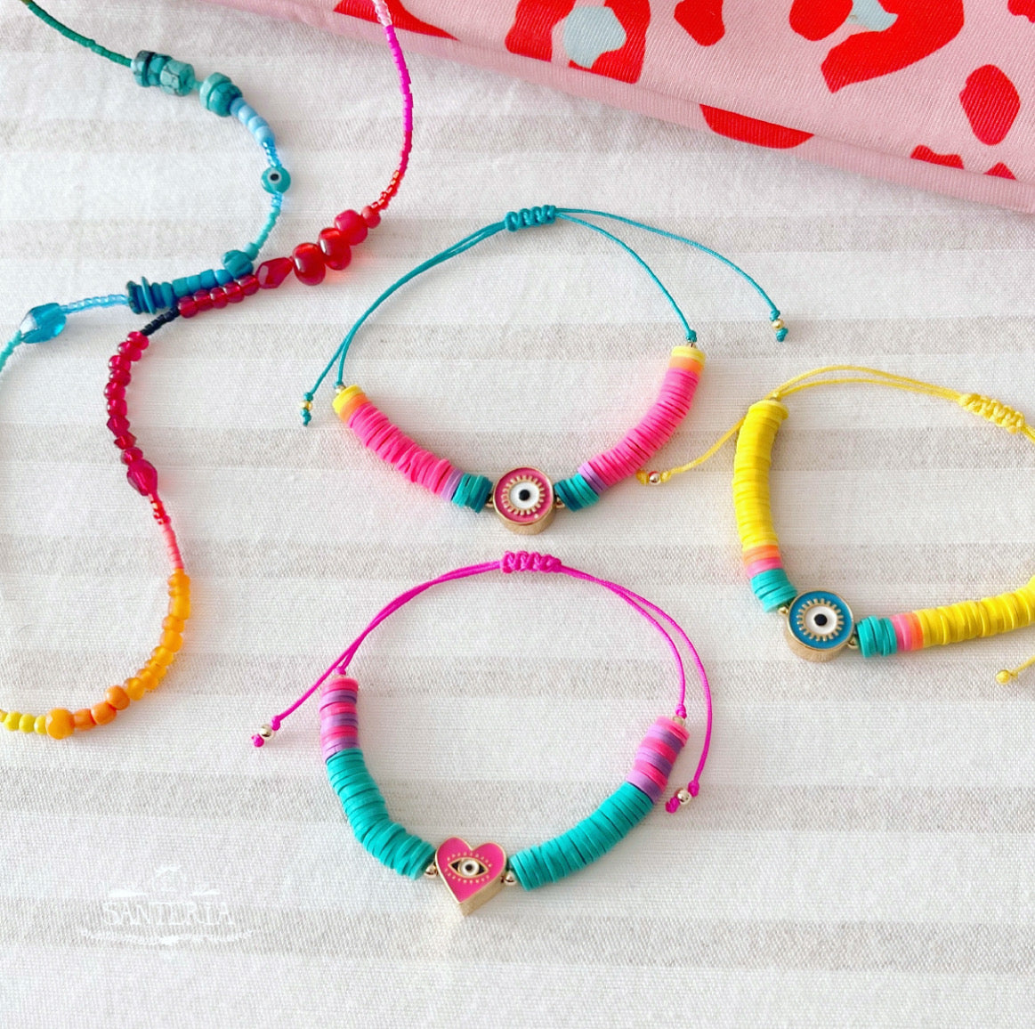 Pulsera ajustable medalla Ojo Turco esmaltado por ambos lados, con terminaciones metálicas en dorado