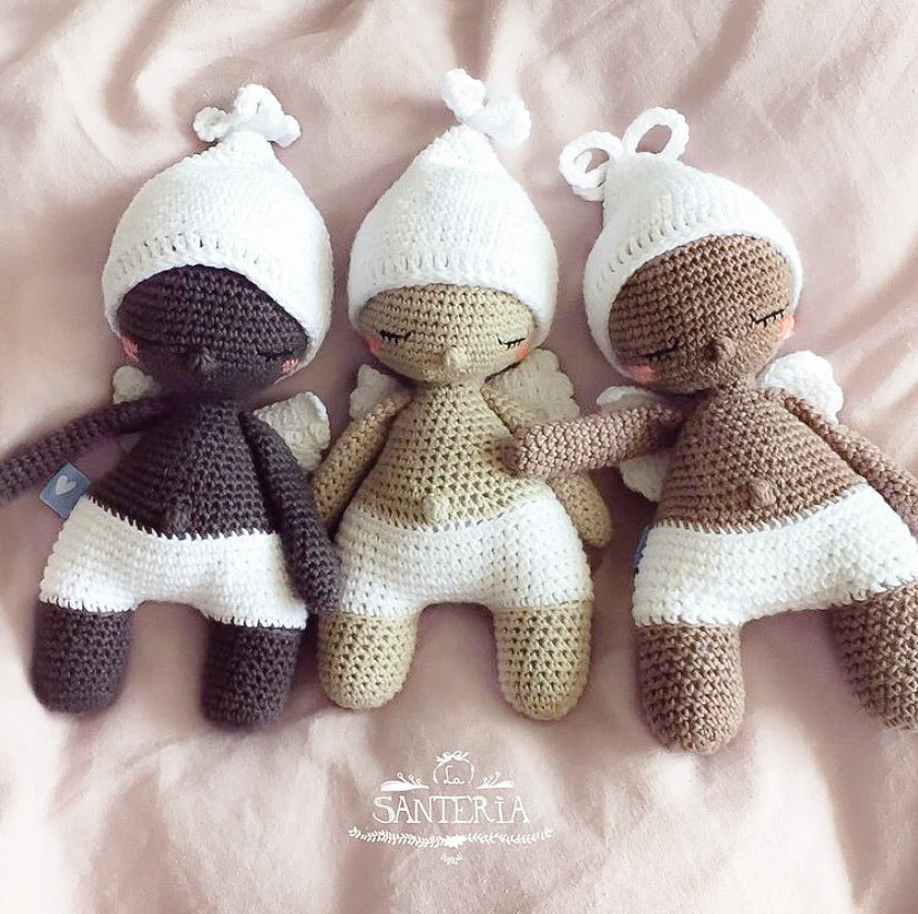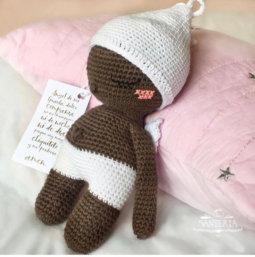 Estos dormilones fueron fabricados a mano, uno a uno por el equipo de La Santería, para brindar una sensación de seguridad y cariño. Tener uno en la pieza de un niño actúa como un recordatorio visual de que siempre tienen un ángel guardián velando por ellos. Además de ser un símbolo de protección, sirve como un compañero reconfortante que puede ayudar a los niños a sentirse seguros y queridos mientras crecen y exploran el mundo. Es un regalo especial que combina cuidado espiritual y afecto tangible.