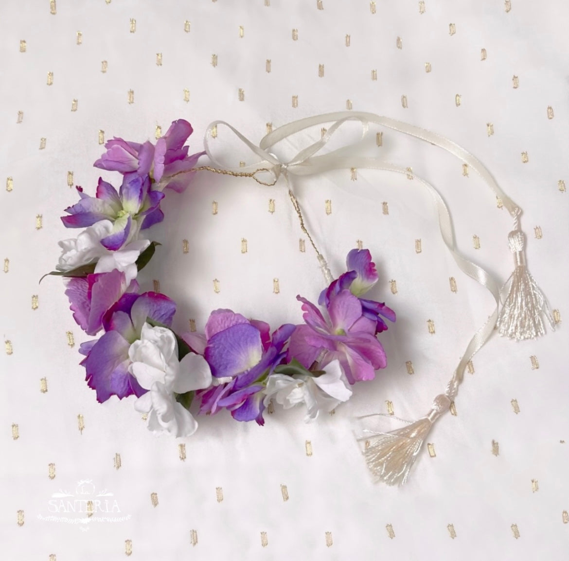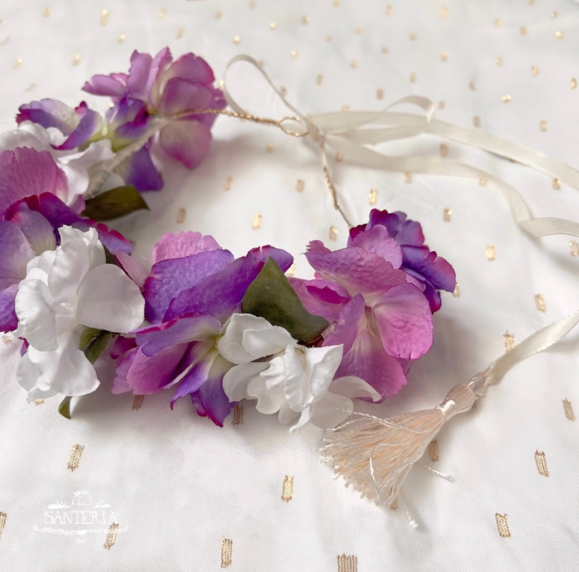 Coronita de flores artificiales, fabricada a mano. Ideal para bautizos, primera comunión o matrimonios.