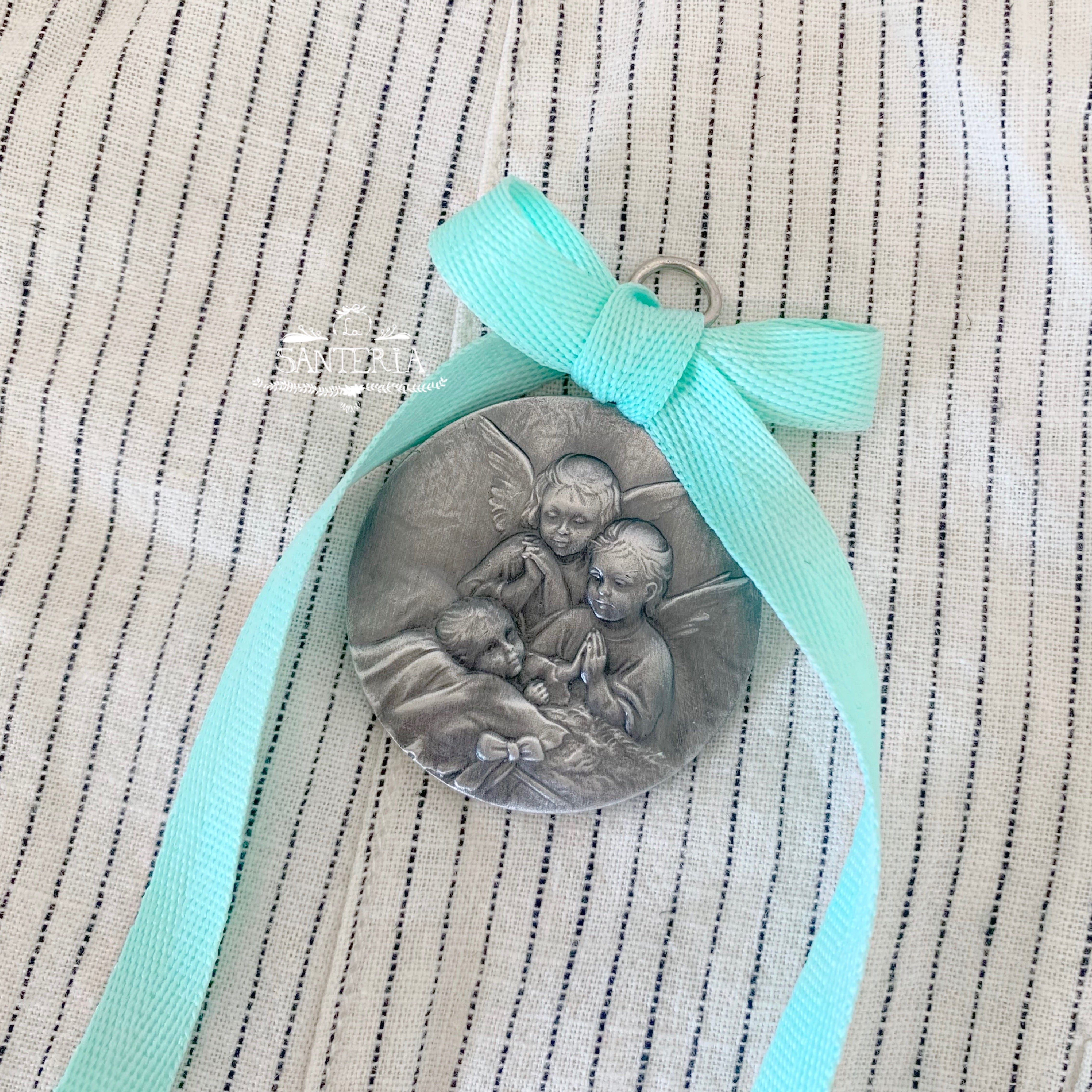 Modelo II : Imagen de Ángeles alrededor de la cuna, cinta verde agua