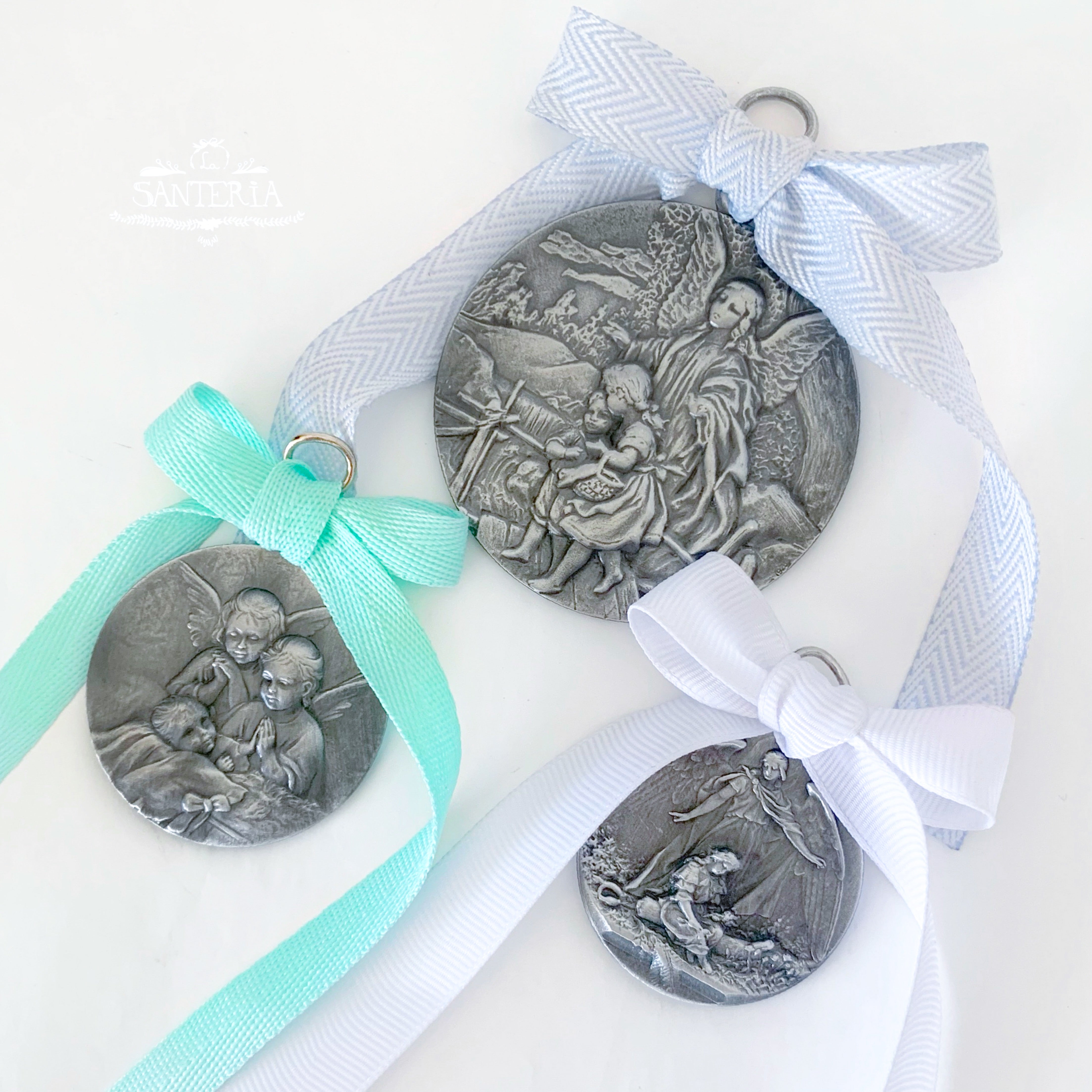 Modelo I : Imagen del Ángel de la Guarda con niña en el campo, cinta blanca