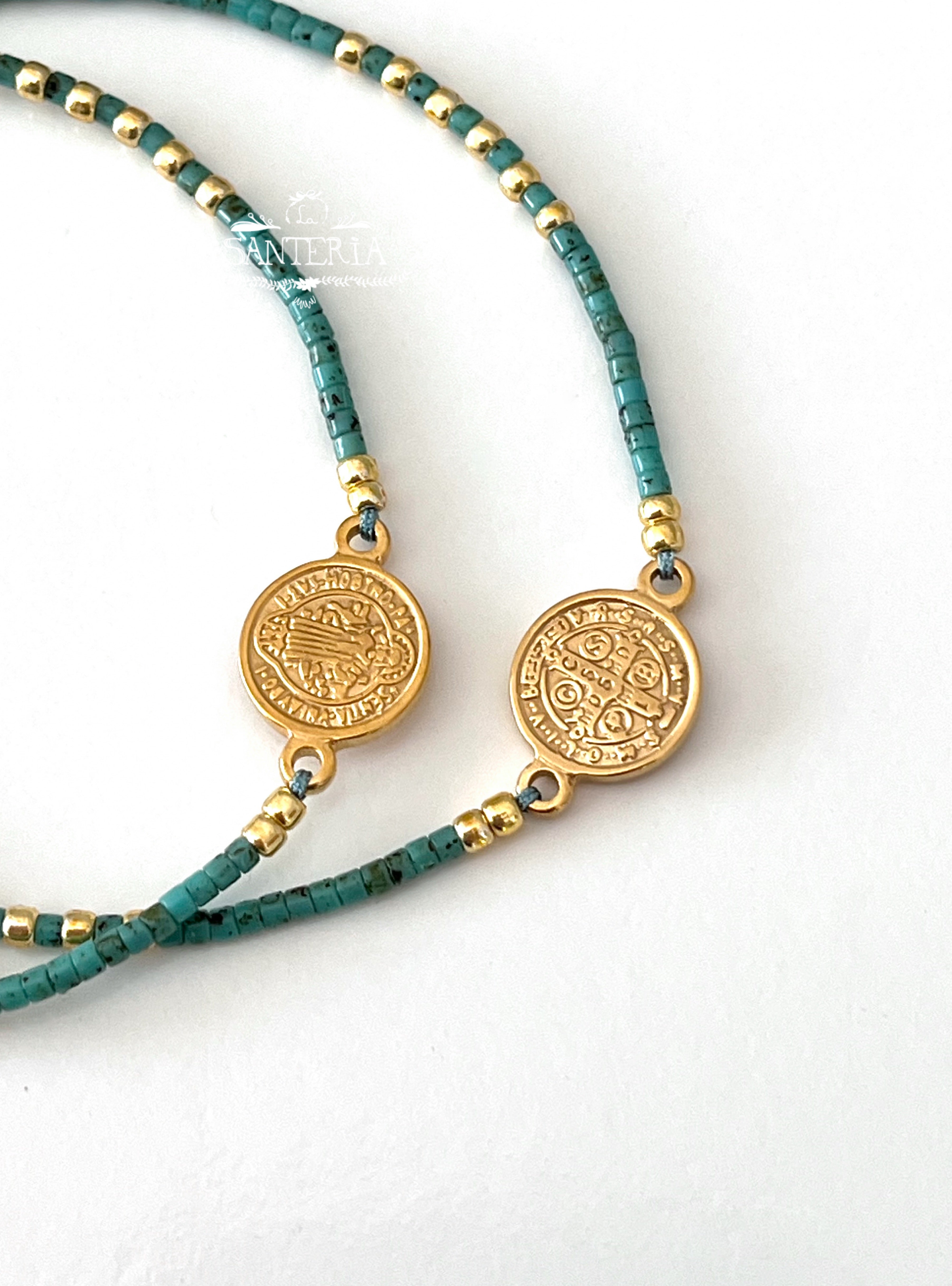 Pulsera San Benito y Virgen de la Medalla Milagrosa