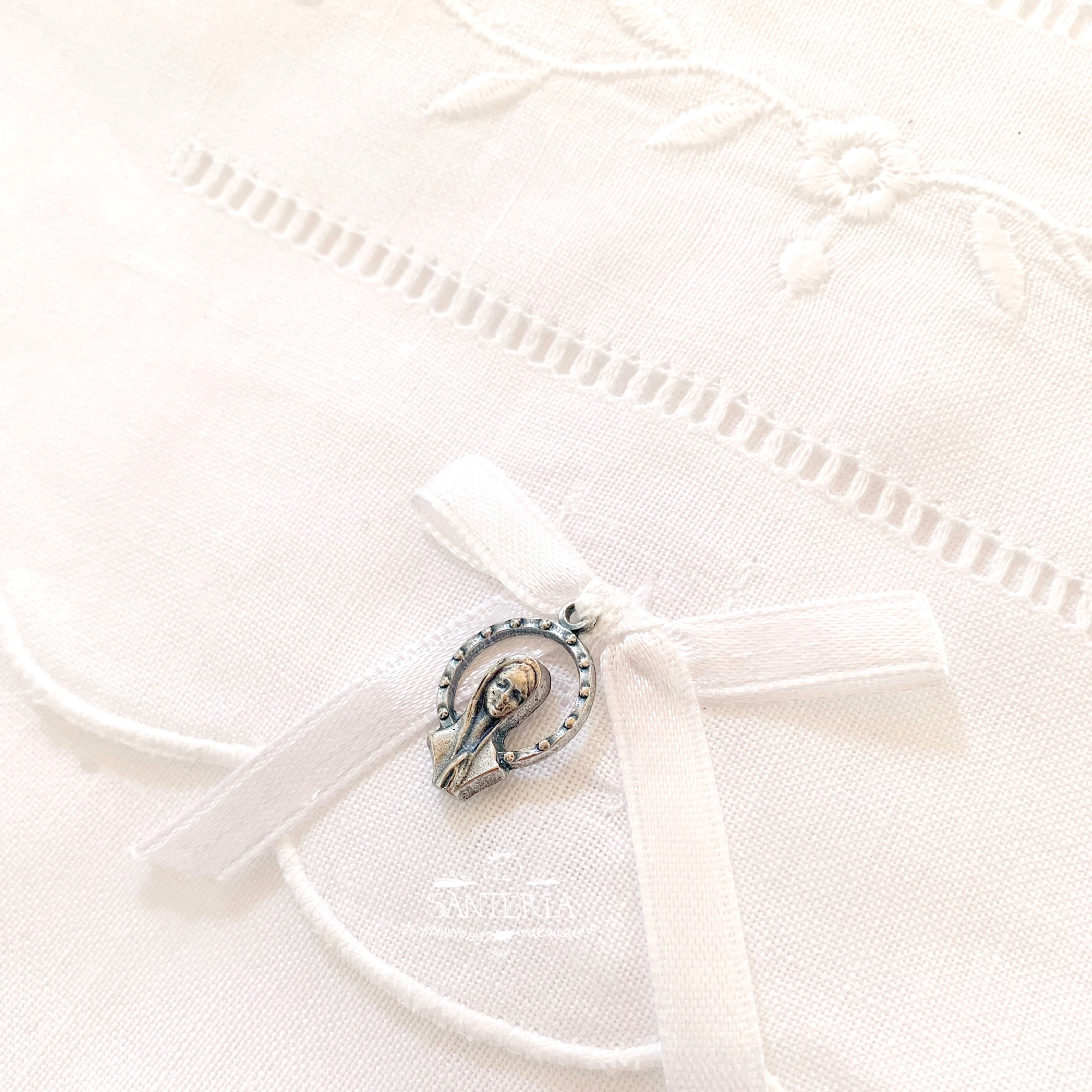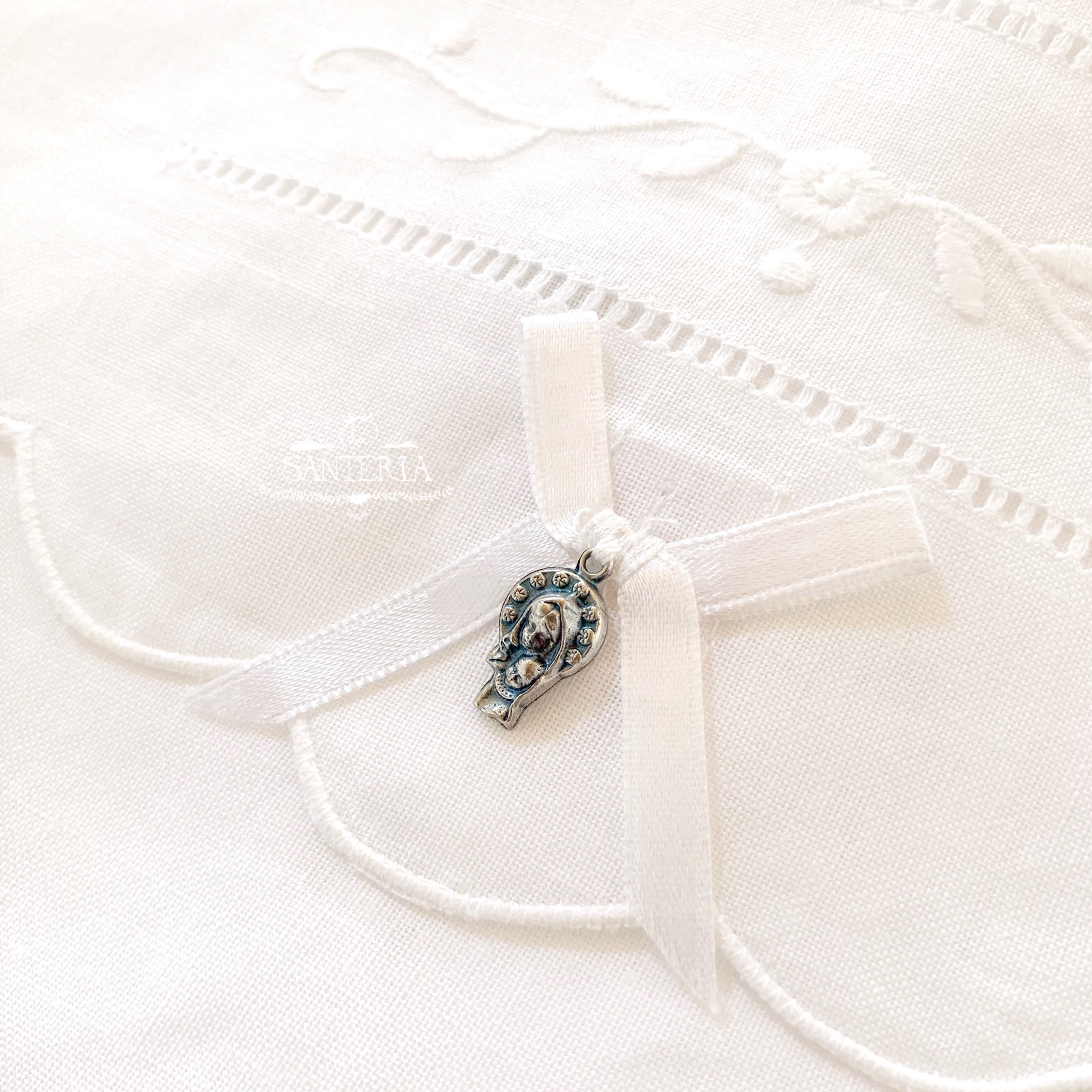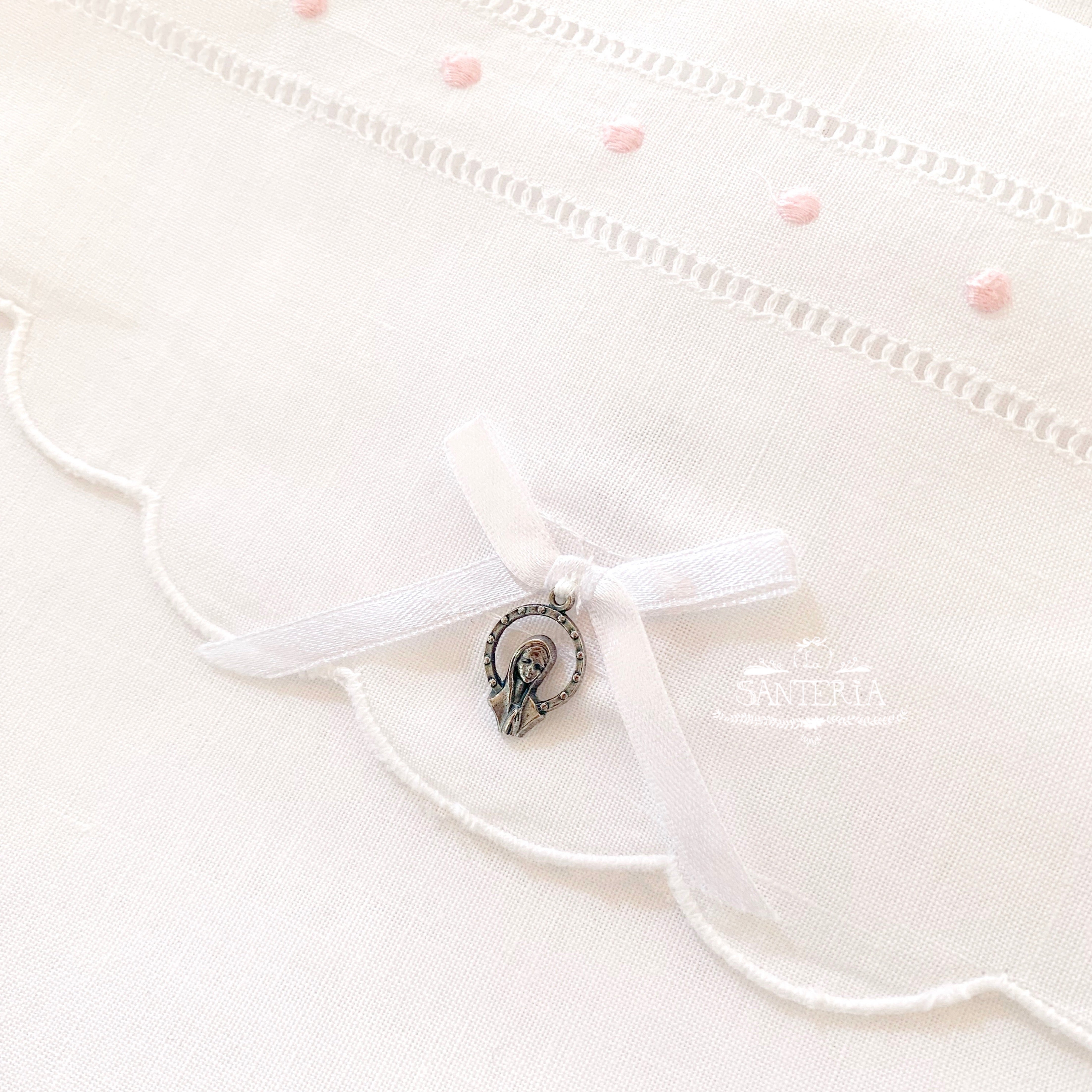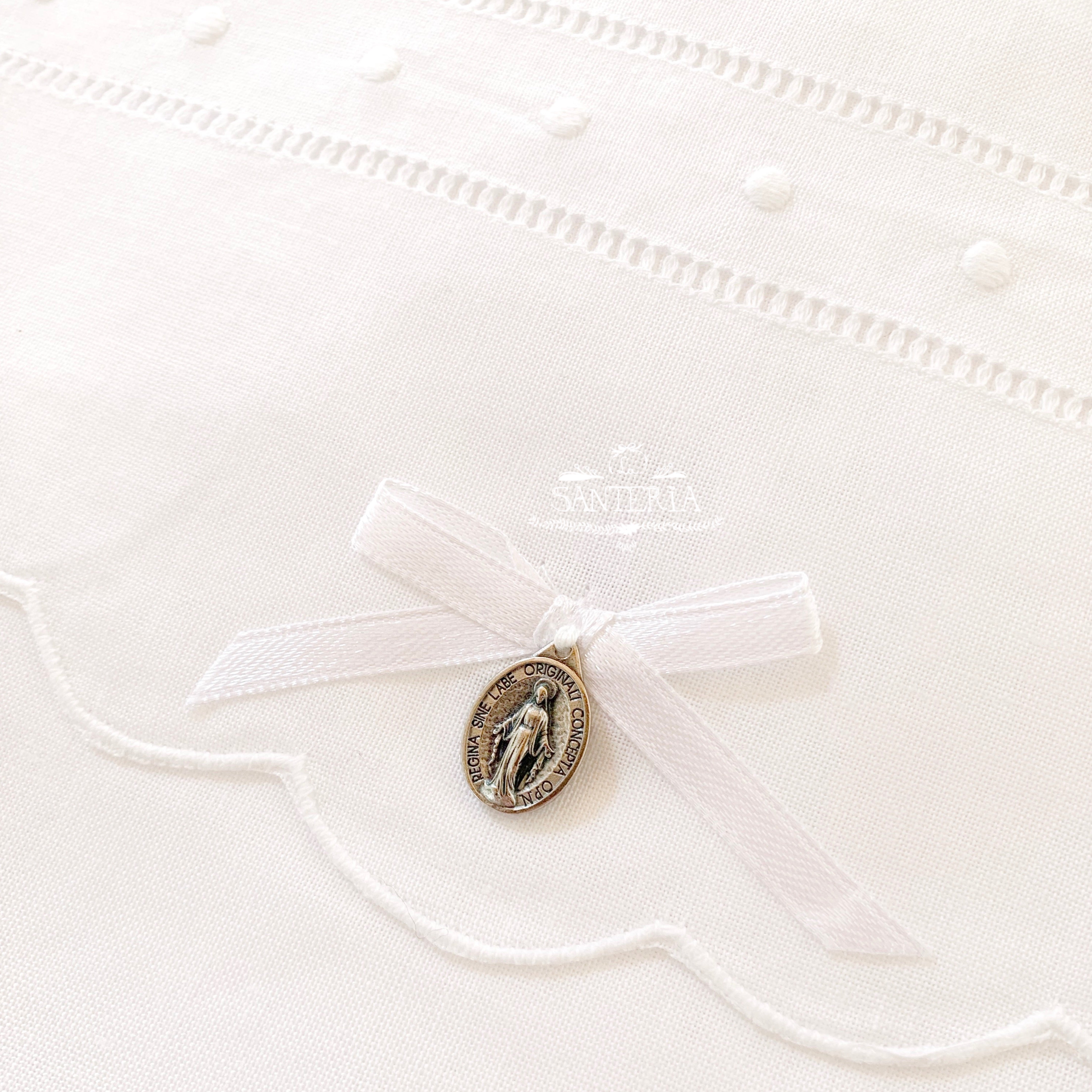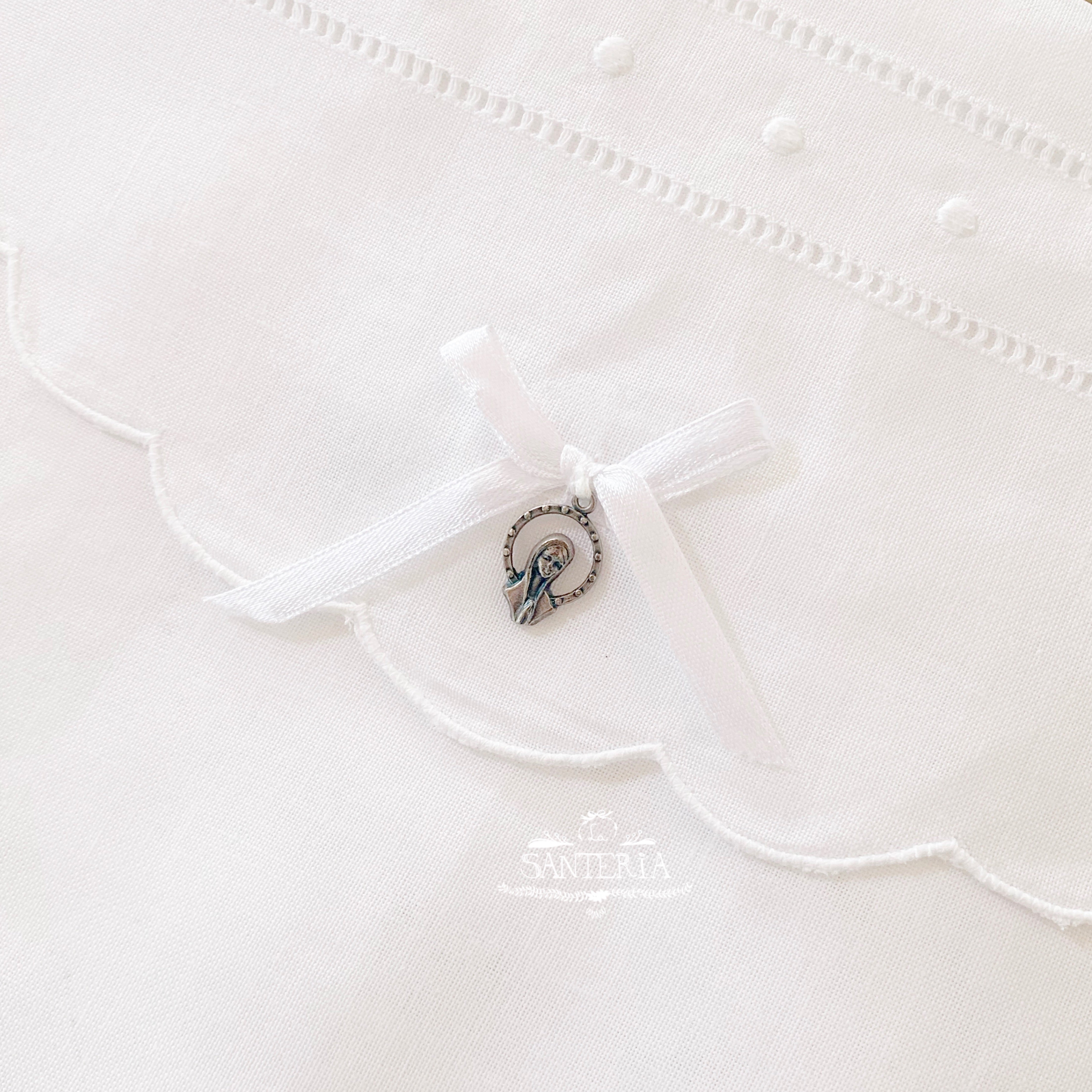 Cojín bordado con medalla para cunas.